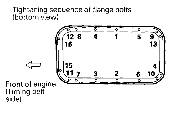 c. Tighten oil pan bolts in sequence to 6 Nm (5 ft. lbs.) torque.