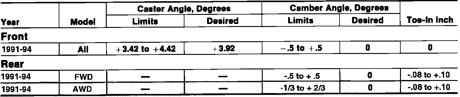 Wheel Alignment Specifications: