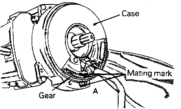 3. Ensure front wheels are straight ahead, then align mating mark and Neutral position indicator of clockspring.