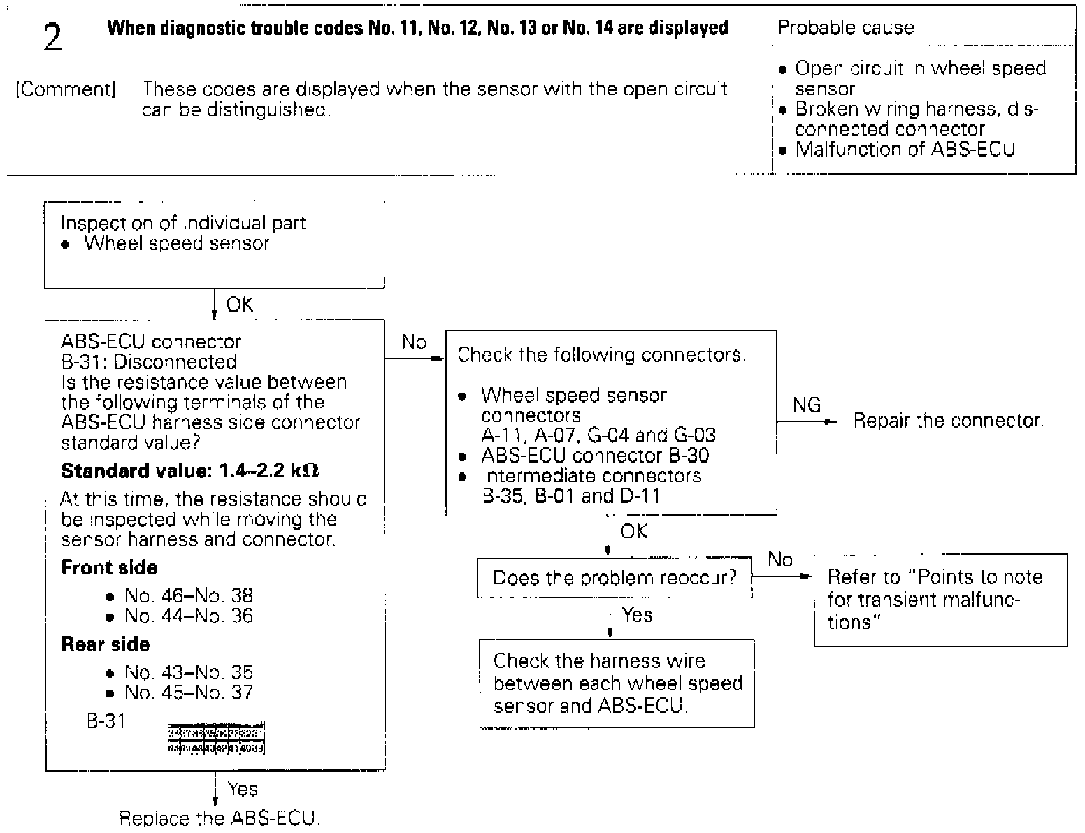 Fig 15 Codes 11, 12 & 14: Open Circuit In Wheel Speed Sensor: