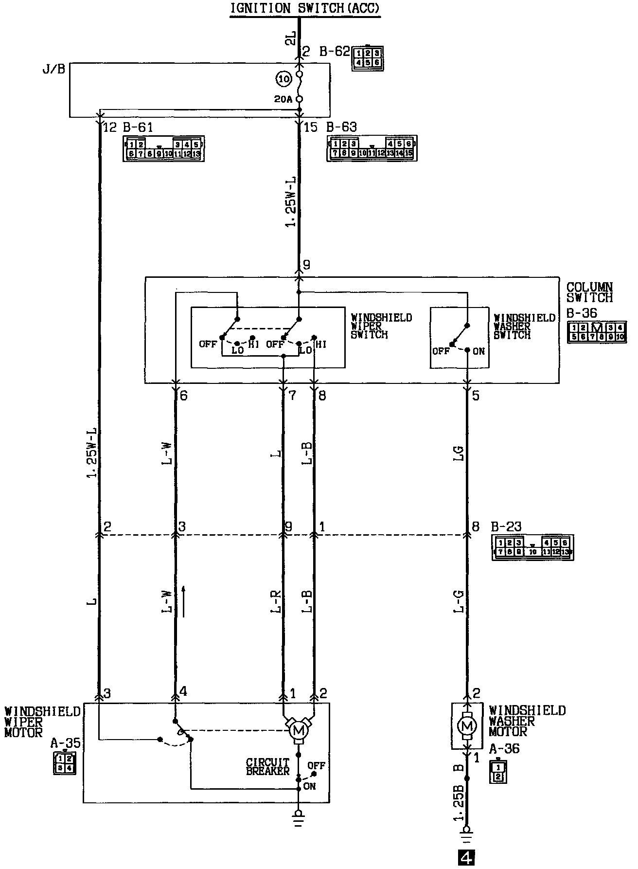 Windshield Wiper And Washer Circuit Diagram <Vehicles Without Intermittent Wiper>: