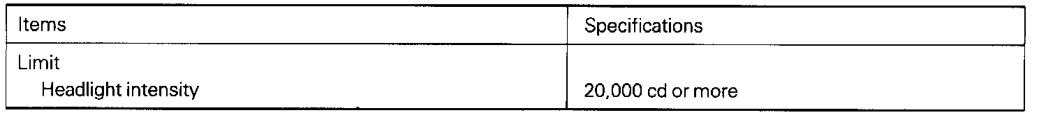 Headlight Service Specifications: