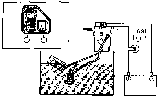 Connect fuel gauge unit to battery via test light (12V-3.4W). Immerse in water. Condition good if light goes off when unit thermistor is in water and lights when unit is removed from water.