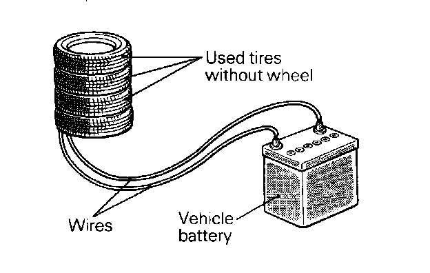 7. Stick three used tires with no wheel on the tire to which the air bag module has been secured.