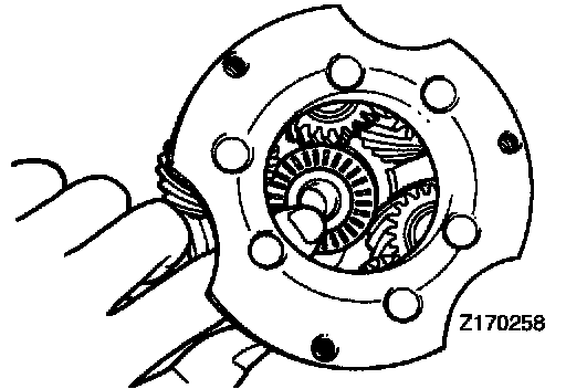 3. Line up the holes of the rear thrust washer and front thrust washer "A" with the shaft hole of the carrier.
