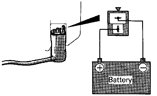 When the battery is connected as shown in the figure, check that the water squirts out strongly.