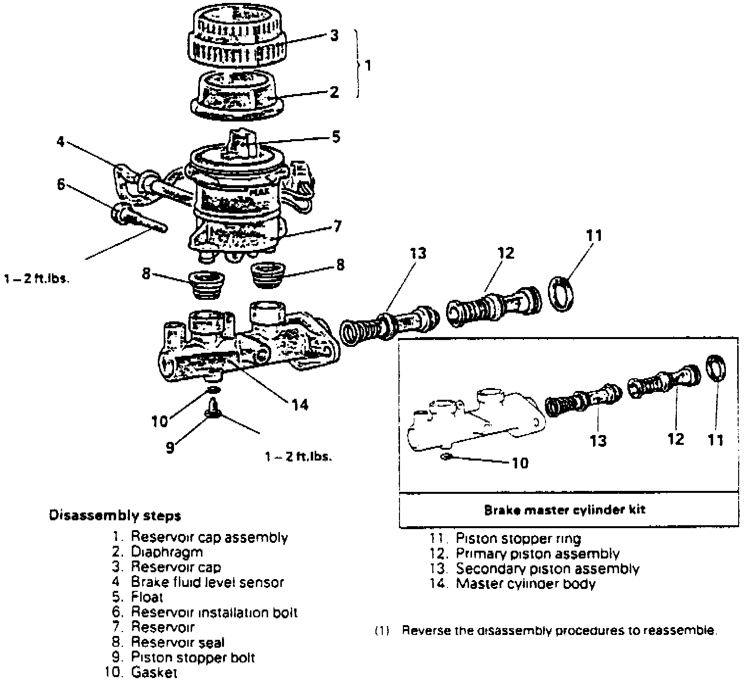 When disassembling the master cylinder, note the position of all parts as they are removed for proper installation.