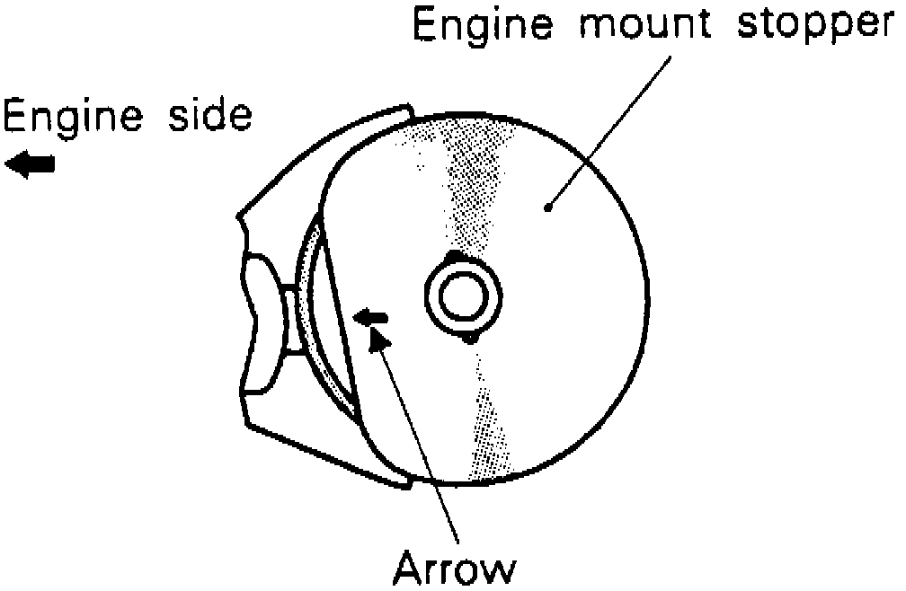3. Engine mount stopper is properly installed when its arrow mark points at center of engine, Fig. 3.