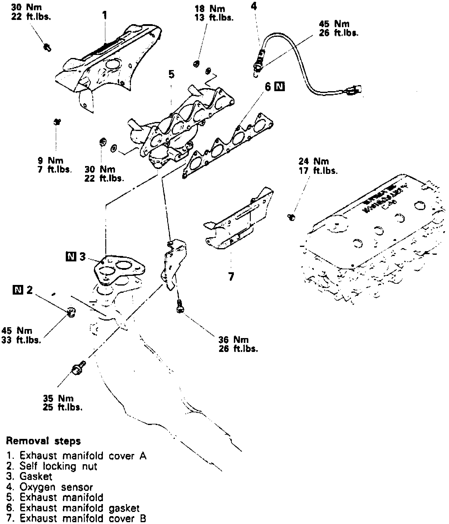 2. Remove exhaust manifold in numbered sequence shown.