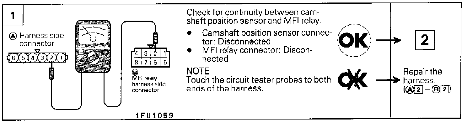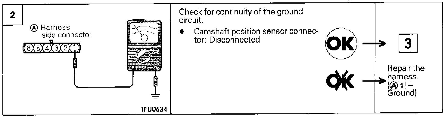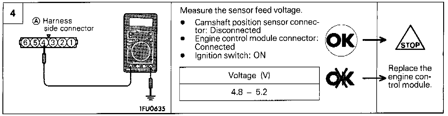 Hint 2: When the camshaft position sensor outputs a pulse signal when the ignition switch is turned to ON (without starting the engine), the camshaft position sensor or engine control module is probably defective.