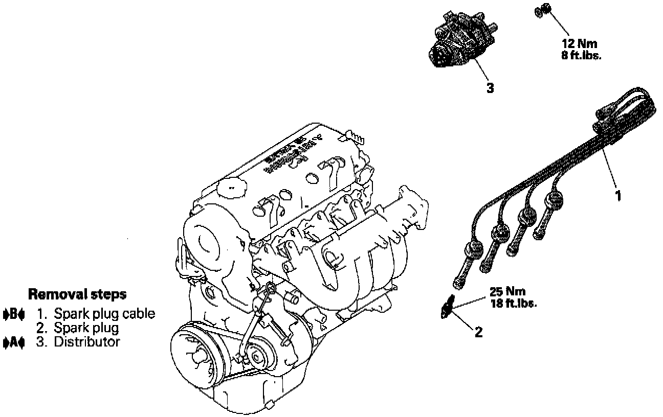 5. Remove distributor mounting nut, then the distributor assembly from engine.