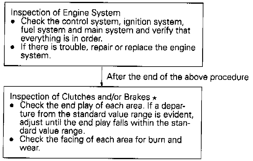 The engine is not accelerated even after a downshift has been made. In this case, defective clutches and/or brakes, or a defective engine system is suspected.