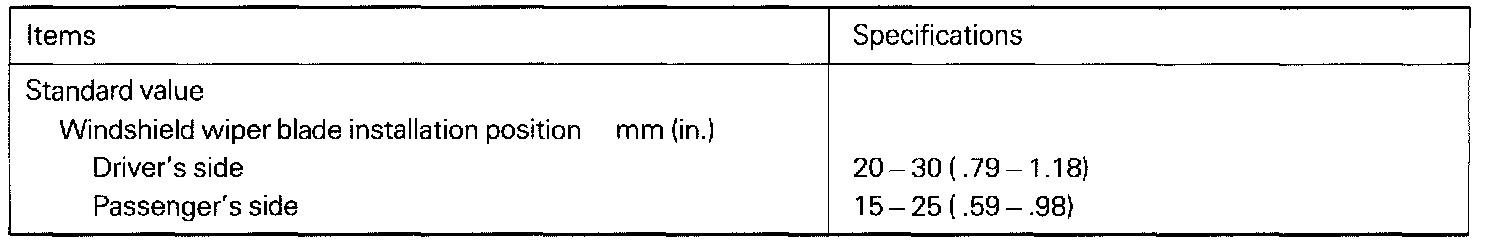 Windshield Wiper And Washer Service Specifications: