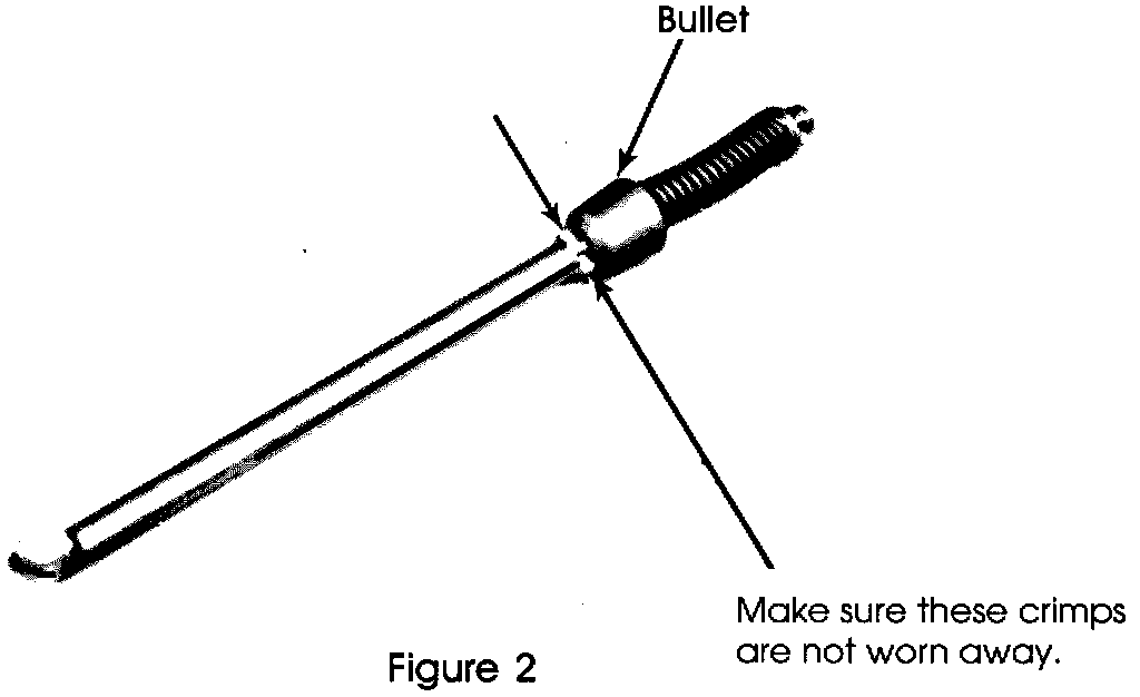 If the car won't roll in either direction, you have a problem with the park mechanism. Remove the valve body and check the park rod. The "Bullet" that engages the park pawl should be spring loaded against two crimped places on the rod, but unable to go past the crimps (figure 2).