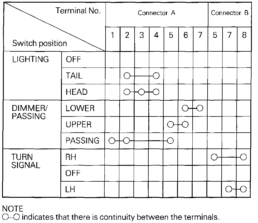 Operate the switch and check for continuity between the terminals.