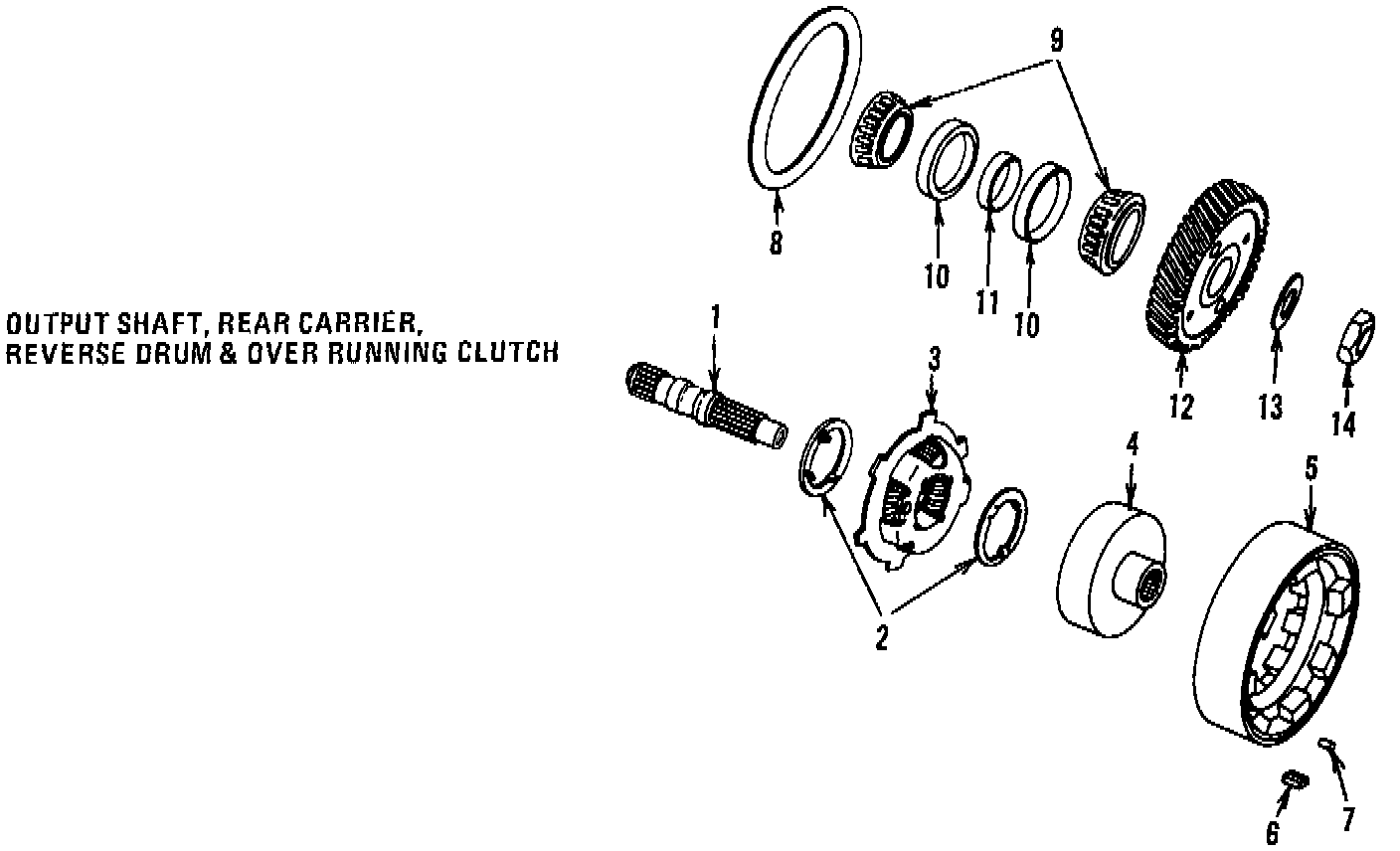 Output Shaft, Rear Carrier, Drum & Clutch, 3 Speed: