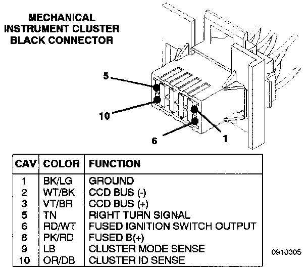 Mechanical Instrument Cluster Black Connector: