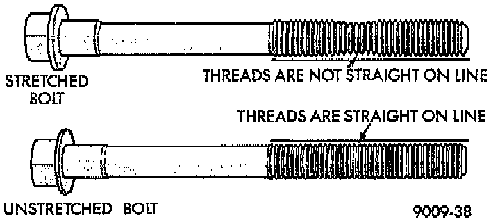 4. Necking can be checked by holding a scale or straight edge against the threads. If all the threads do not contact the scale the bolt should be replaced.