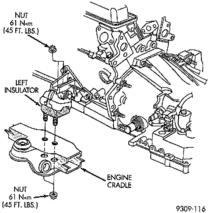 2. Align engine mounts and install all nuts. Tighten fasteners to specified torque.
