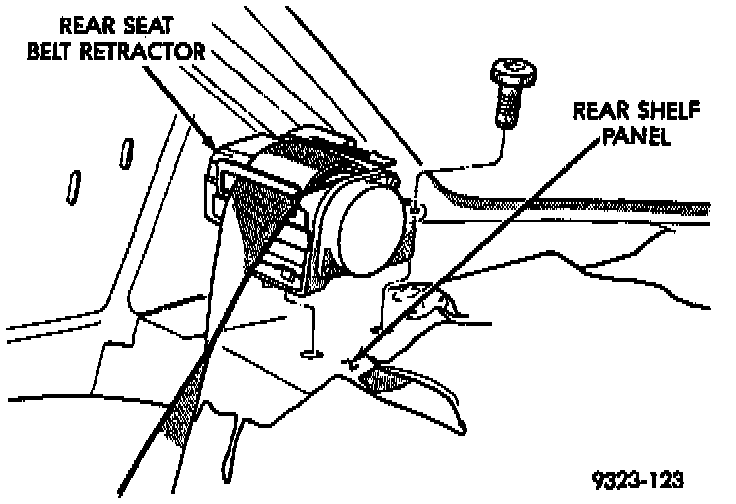 2. Install bolt to hold belt retractor to shelf panel.