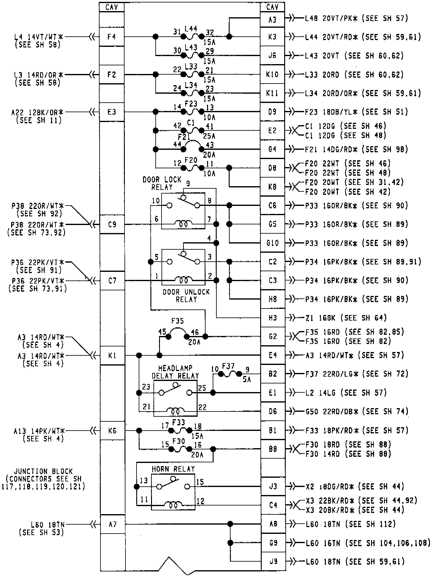 Junction Block Internal Circuitry: