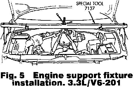To allow removal of cradle module assembly from the vehicle, it will be necessary to support the engine and transaxle assembly using engine support fixture No. 7137 or equivalent.