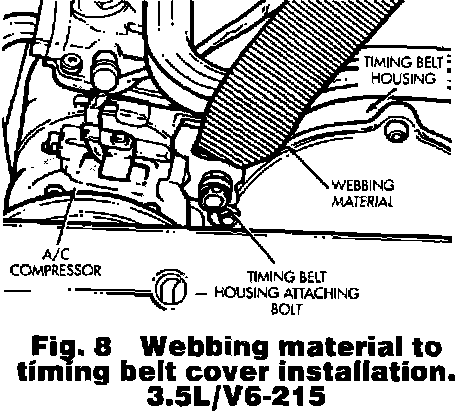 Fig. 8 Webbing Material To Timing Belt Cover Installation: