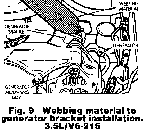 Fig. 9 Webbing Material To Generator Bracket Installation: