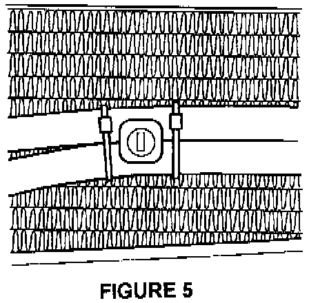 27. Place two tie straps around the transmission fluid auxiliary cooler hoses approximately 178 mm (7 in.) inboard of the left edge of the condenser fins. Insert a mounting strap (from the engine side) through the radiator and A/C condenser fins so it passes between the transmission fluid auxiliary cooler hoses and the tie straps (Refer to Figure 5).