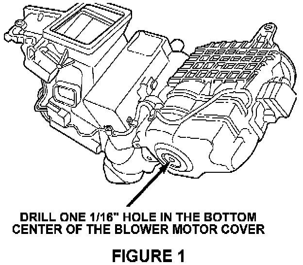 2. Drill one 1/16" hole in the center of the blower motor cover to drain any water present and allow for future drainage, Figure 1.