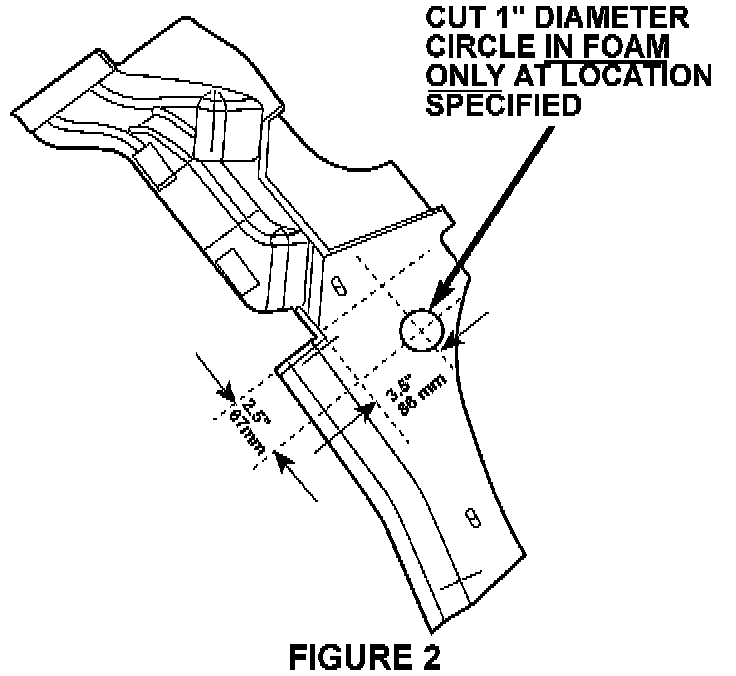 3. Cut out a 1" diameter circle of foam off of the top of the right heat distribution duct, Figure 2.