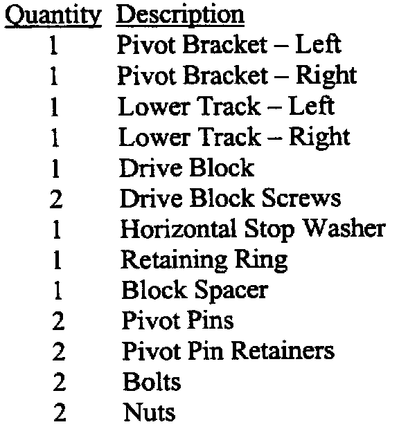 Each package contains the components as shown: