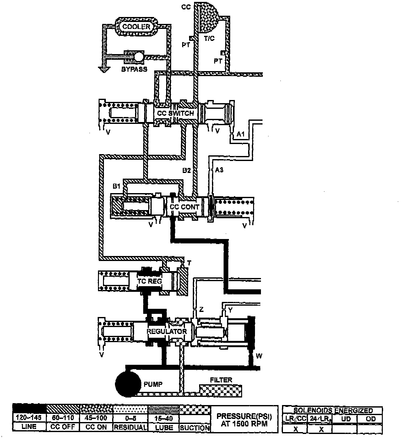 Beginning in 1996, the torque converter control valve was modified to delete the function of regulating the flow to the torque converter when the converter clutch is not applied. The valve switches the direction of fluid flow when the converter clutch is applied and vents the release side of the torque converter clutch.