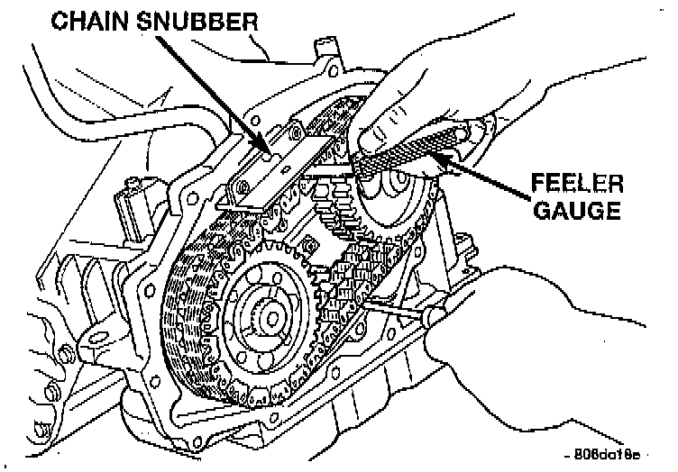2. Using a feeler gauge, measure the gap between the snubber face and the top of the chain.