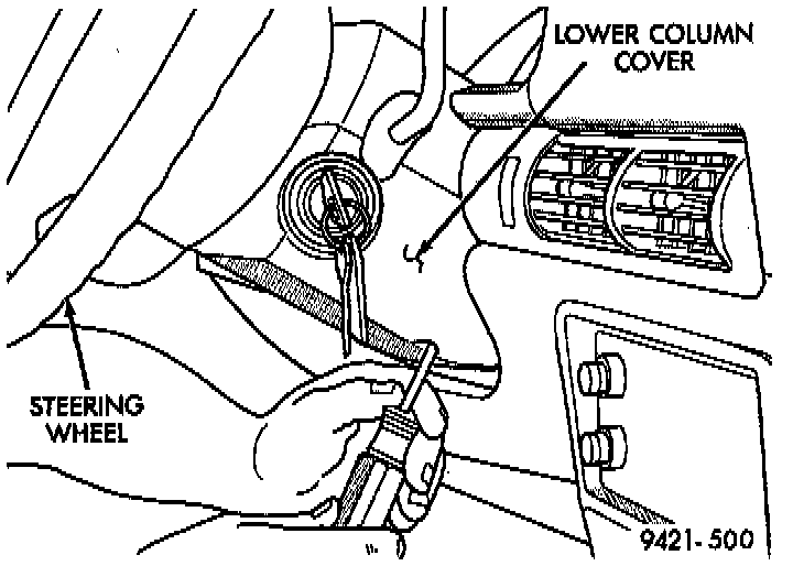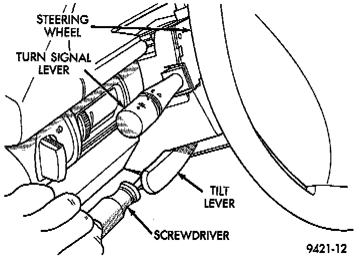 11. Shift the transaxle lever to park. Move the steering column to full tilt downward. Put the column shifter in park with key removed.