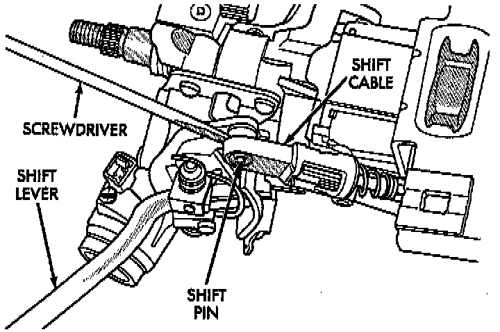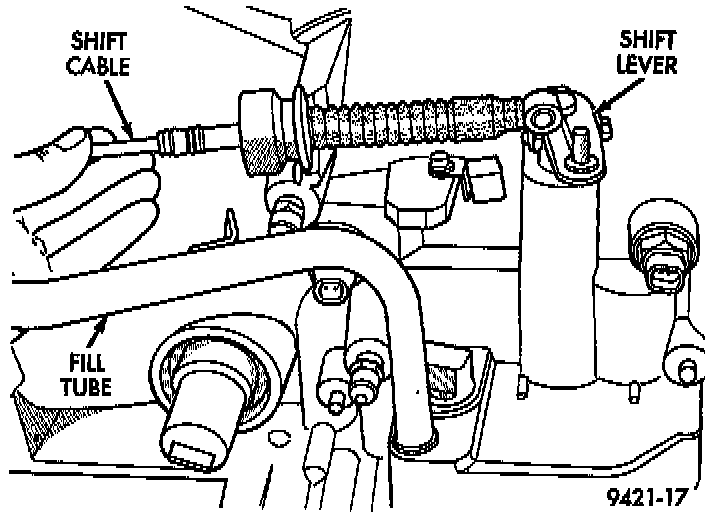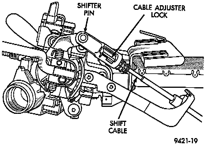 10. Attach shift cable (with shift lever in park position) to attaching stud (pin) by snapping into place.