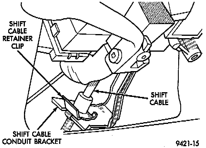 9. Connect transaxle shift cable to shift cable conduit bracket and secure with new clip.