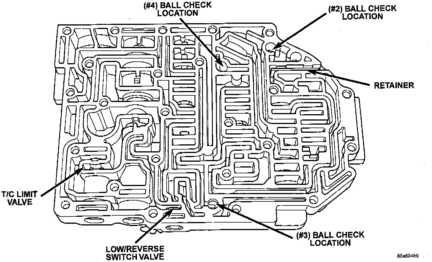 7. Remove valve body check balls. Note the location of valve body check balls.