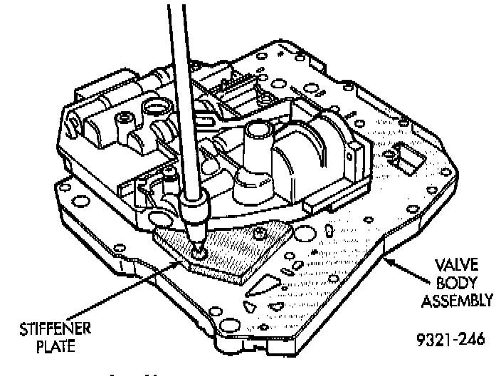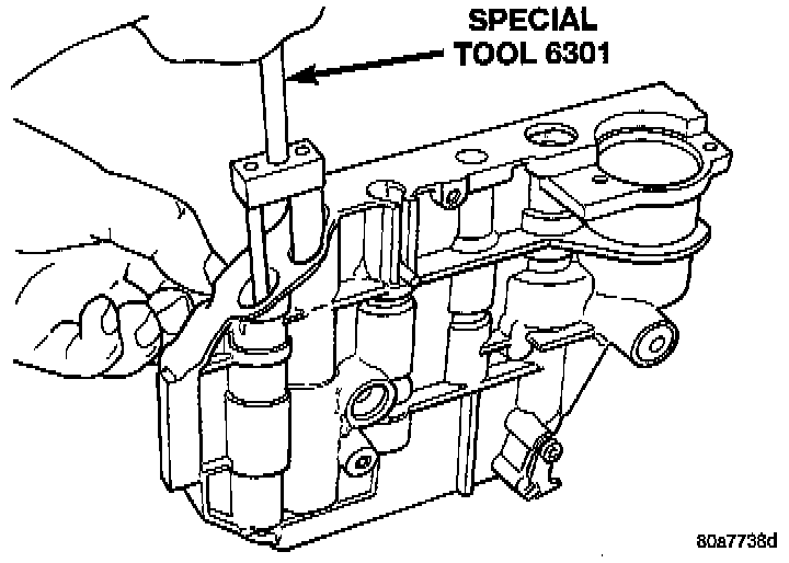 8. Remove dual retainer plate from valve body. Use special tool 6301, or equivalent to remove plate.