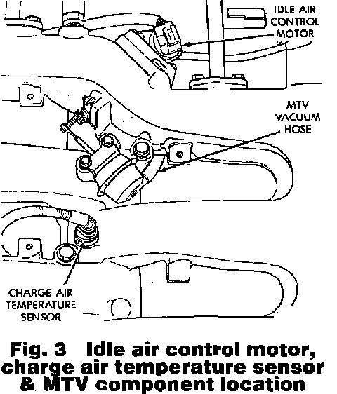 Fig. 3 IAC Motor, Air Temp Sensor, And MTV Component Location: