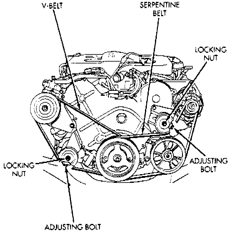 1. Using belt tensioning tool No. C-4162, or equivalent, ensure belt tension is 120 lbs. If not within specification, tighten belt as follows:
