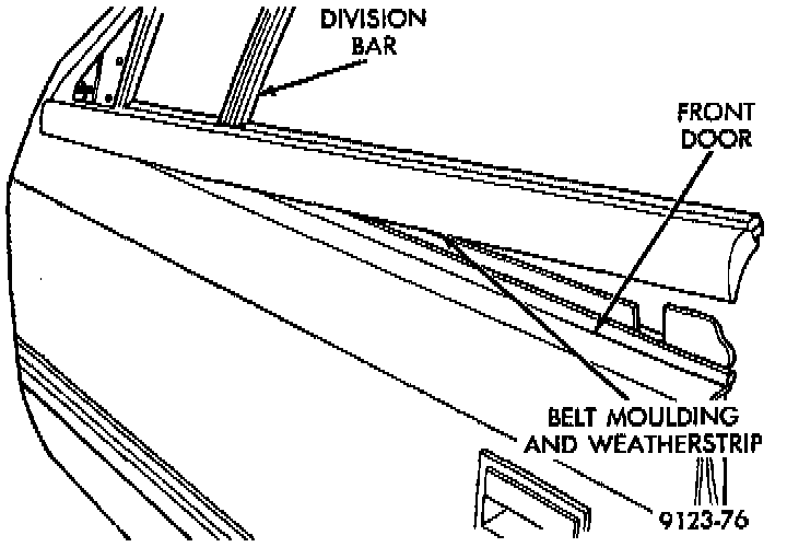 3. Remove screws holding belt moulding to outer door panel upper flange.
