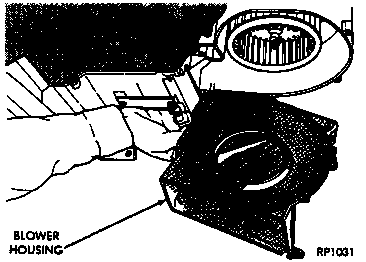 7. Remove (3) screws, securing the blower and wheel assembly to the heater or A/C unit housing and separate the assembly from the unit.