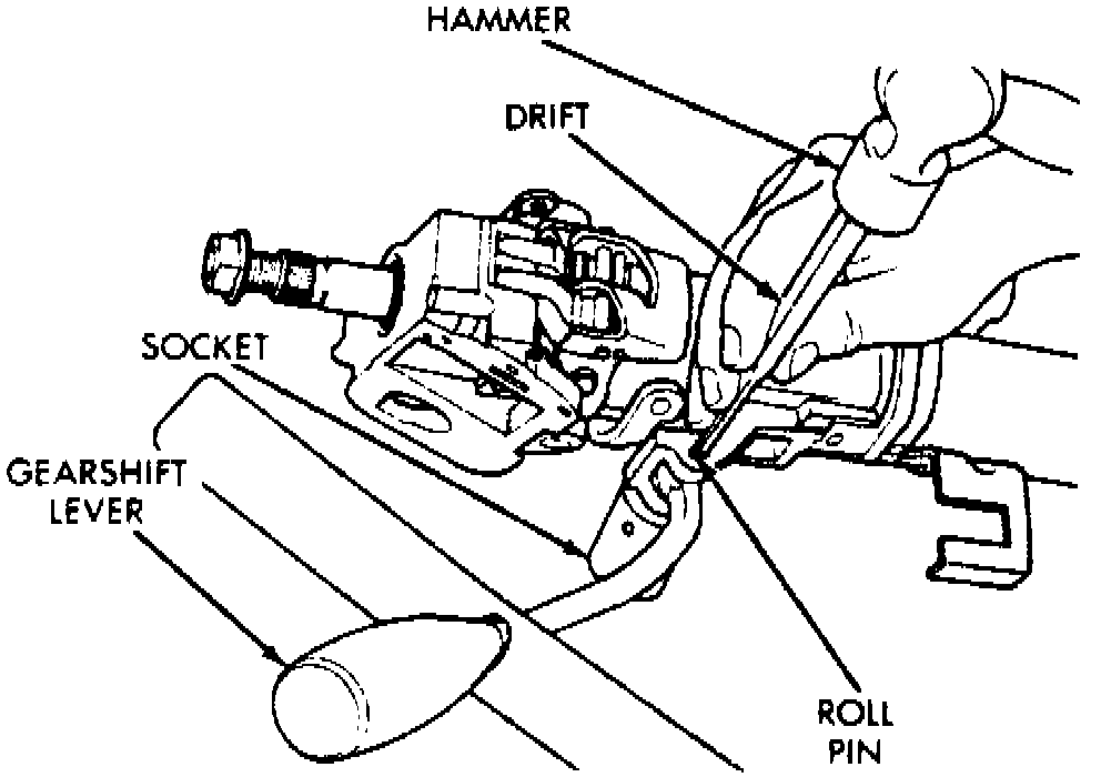 The only other serviceable component is the gear shift lever assembly. Use a drift and a suitable size socket to drive out lever retaining pin.