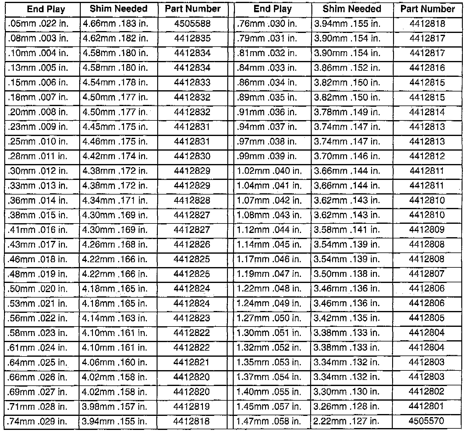 NOTE: If end play is too high, install a 0.04 mm (0.0016 inch) thinner shim. If end play is too low, install a 0.04 mm (0.0016 inch) thicker shim combination. Repeat until 0.05 to 0.10 mm (0.002 to 0.004 inch) end play is obtained.
