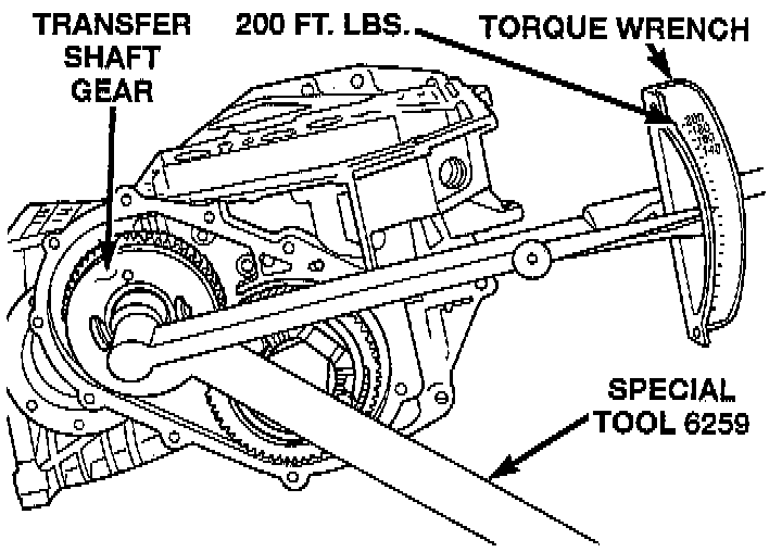 2. Install transfer shaft gear and bearing assembly and torque the nut to 271 Nm (200 ft. lbs.).