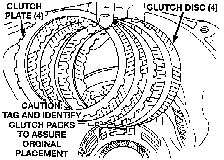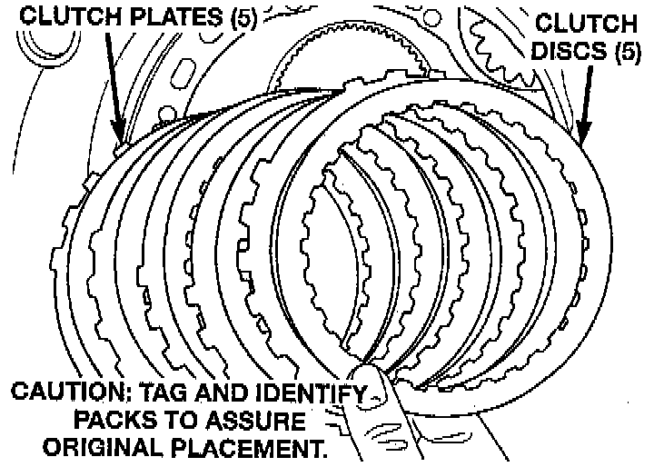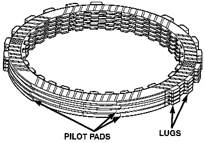 NOTE: When installing the 2-4 clutch plates and discs, the orientation should be alternated so the pilot pads of adjacent plates do not align, refer to image.