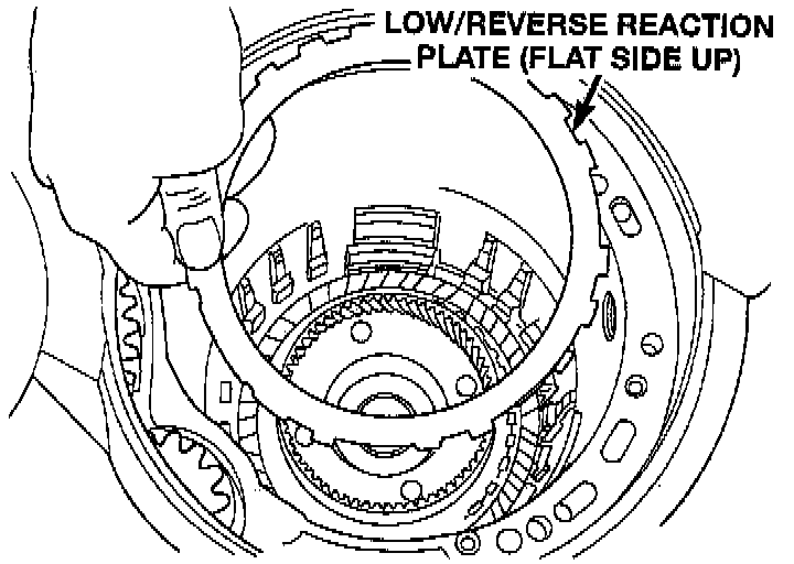NOTE: 1998 Transaxles have a stopped Low/Reverse Reaction Plate. Install plate step side up.