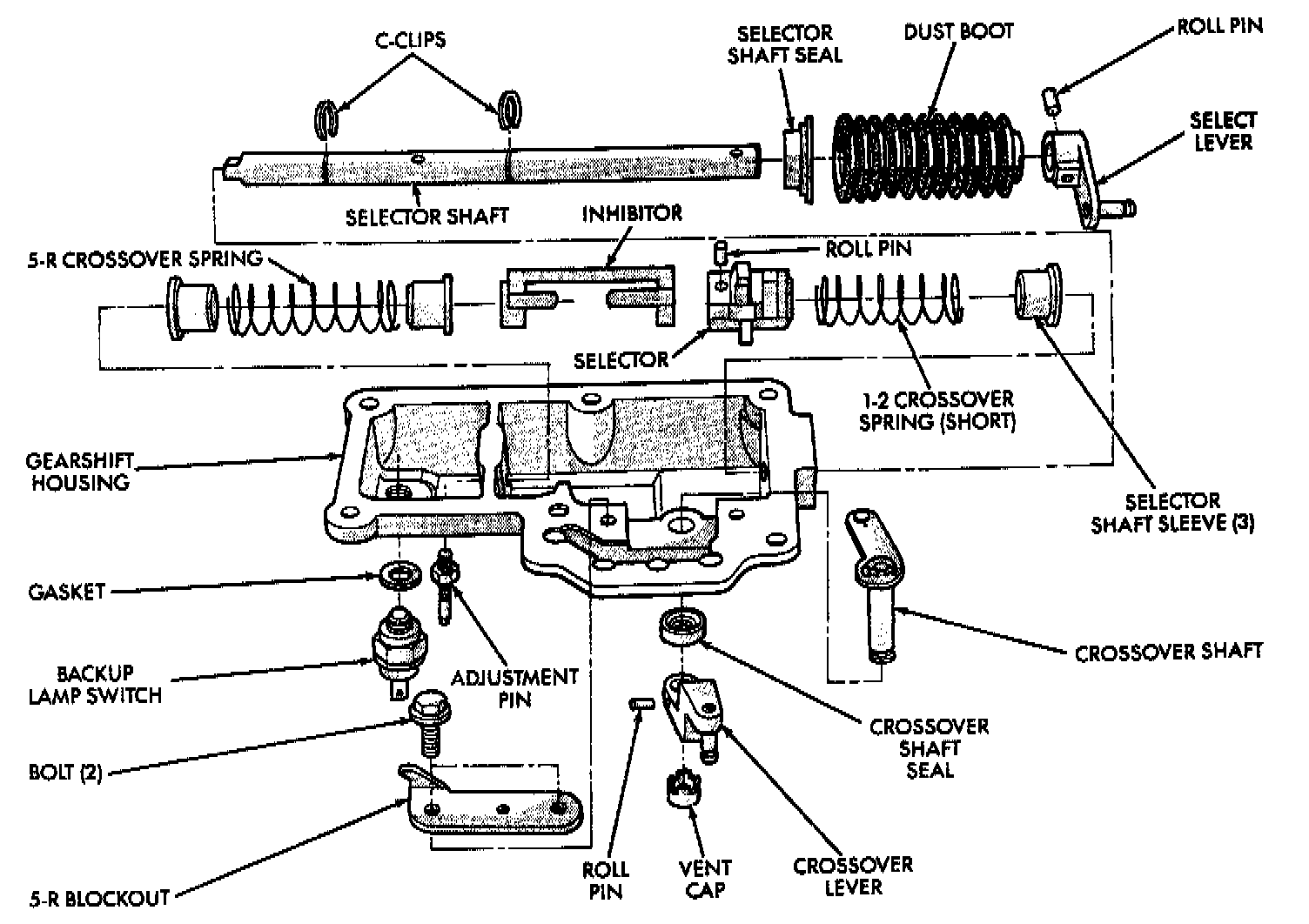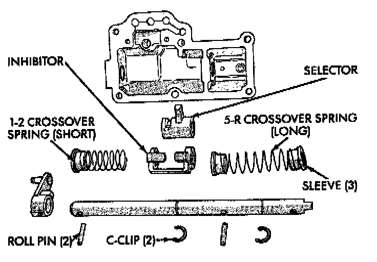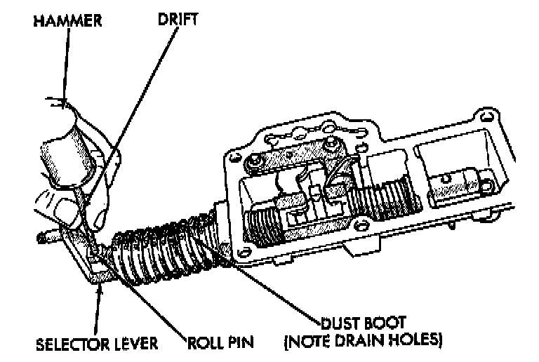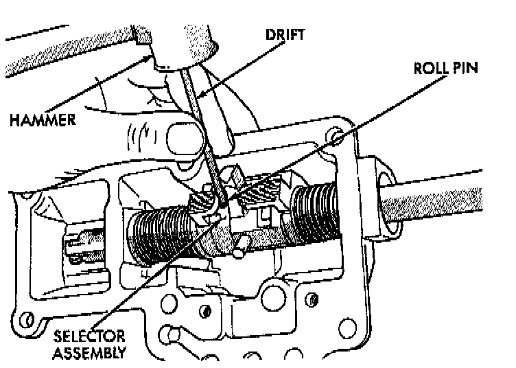 For Disassembly: Drive roll pin out far enough to clear the selector shaft, but not through. The pin must remain in the selector so not to break the housing.