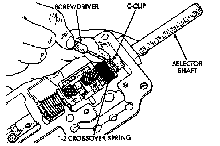 The C-clip grooves in the selector shaft will damage the oil seal. Install oil seal after selector shaft is installed. Always use a new oil seal when selector shaft is removed.